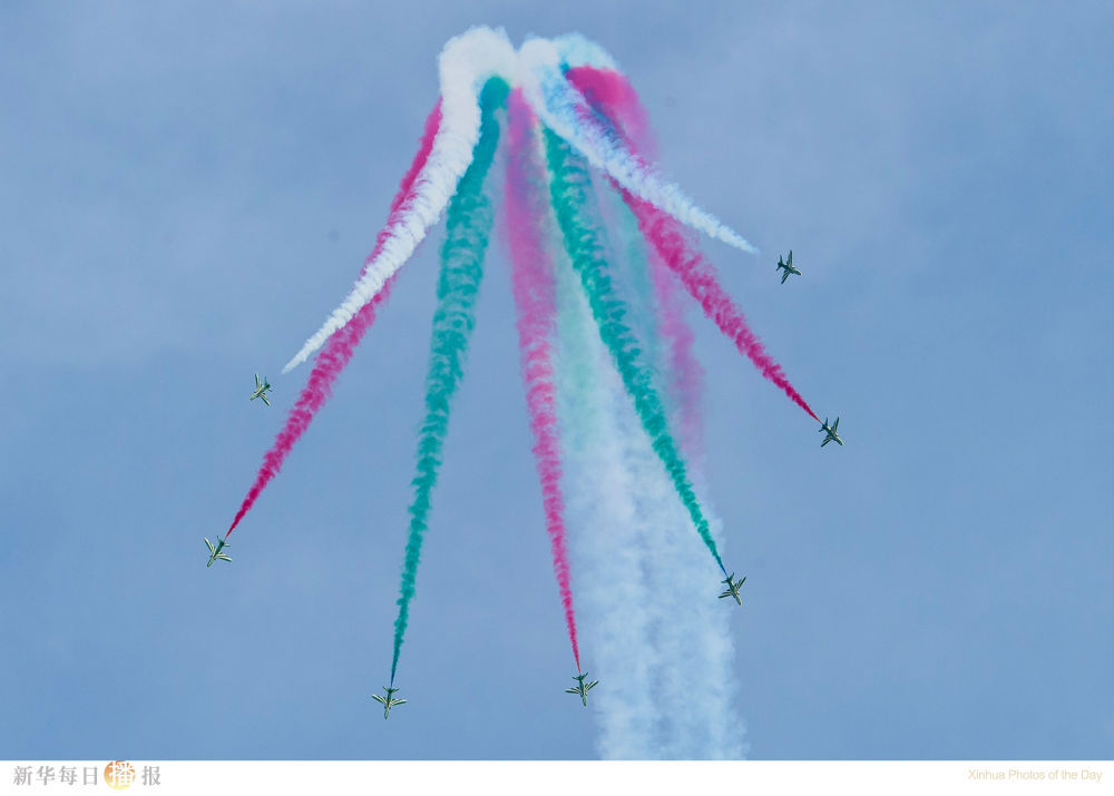 11月5日,沙特空军猎鹰飞行表演队在卡塔尔首都多哈进行飞行表演。