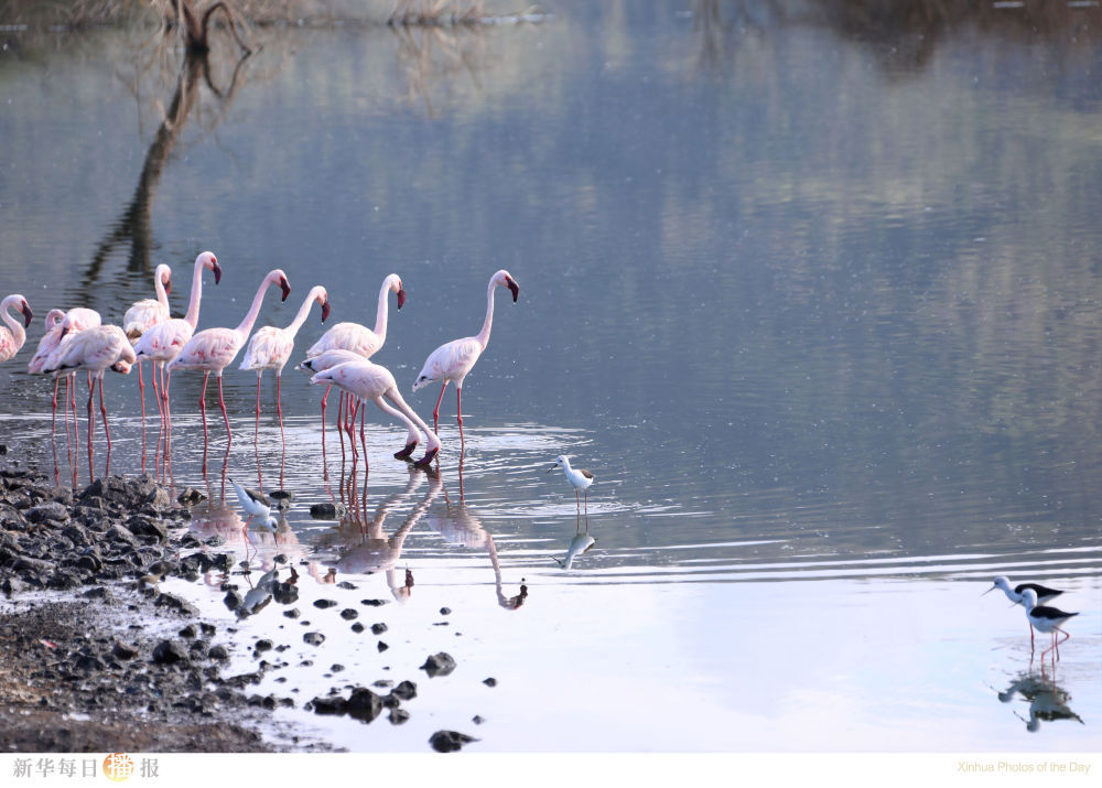 这是11月6日在肯尼亚博戈里亚湖拍摄的火烈鸟。博戈里亚湖位于肯尼亚东非大裂谷地区中部,距首都内罗毕约300公里,是一个内陆咸水湖泊。博戈里亚湖沿岸被树林和草地覆盖,拥有地下热泉,湖内丰富的藻类等生物吸引了上百万只火烈鸟在此栖息,被称为火烈鸟天堂。环绕博戈里亚湖建立的国家保护区面积达107平方公里,是数百种鸟类的栖息地,2001年被国际湿地公约组织列入国际重要湿地名录。
