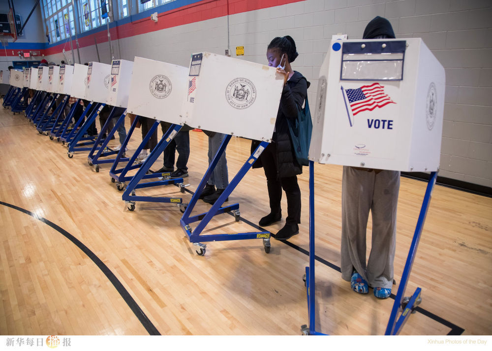 11月8日,选民在美国纽约的一处投票站参加中期选举投票。在政治极化、社会撕裂、通货膨胀“高烧不退”以及大多数人对国家走向不满的背景下,美国2022年中期选举于当地时间8日举行。