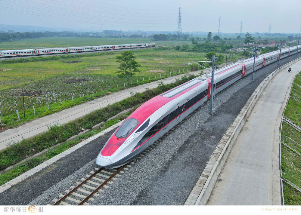 11月9日,在印度尼西亚西爪哇省万隆市,一列高铁动车组正在雅万高铁试验段进行热滑试验(无人机照片)。雅万高铁试验段接触网热滑试验9日成功进行,实验中全面检测了试验段牵引供电系统各项功能。据中方施工联合体介绍,相关指标参数表现良好,完全符合设计要求,这为下一步动态检测创造了条件。雅万高铁连接印尼首都雅加达和第四大城市万隆,是“一带一路”倡议和中印尼两国务实合作的标志性项目,也是中国高铁首次全系统、全要素、全产业链在海外建设项目,最高设计时速350公里。项目建成后,雅加达到万隆的旅行时间将由现在的3个多小时缩短至40分钟,将极大改善当地交通状况、带动沿线产业开发,对助力印尼经济和社会发展具有重要意义。