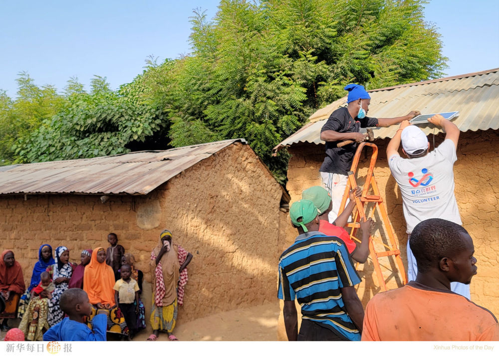 11月4日,在尼日利亚卡诺州邦库雷区劳特耶村,技术人员安装调试太阳能家用照明设备。中国电建集团近日向该村捐赠了太阳能家用照明设备 ,村里300多户家庭自此可以摆脱长期以来仅靠炭火或者煤油灯提供夜间照明的处境。此次捐赠是由中国在非企业社会责任联盟发起的“百企千村”活动的一部分。