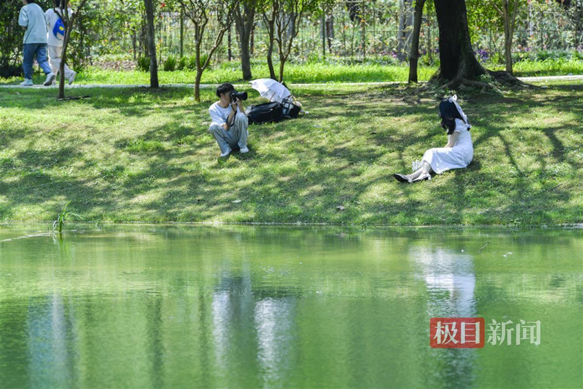 据了解,湿地面积占公园91%,有近200种植物品种,7个子湖水系连通,通过引江济湖——泵站将汉水引入金银湖,加大净水能力,同时“水下森林”进一步助力改善水质,目前呈现一幅水清岸绿、鱼翔浅底的画面。