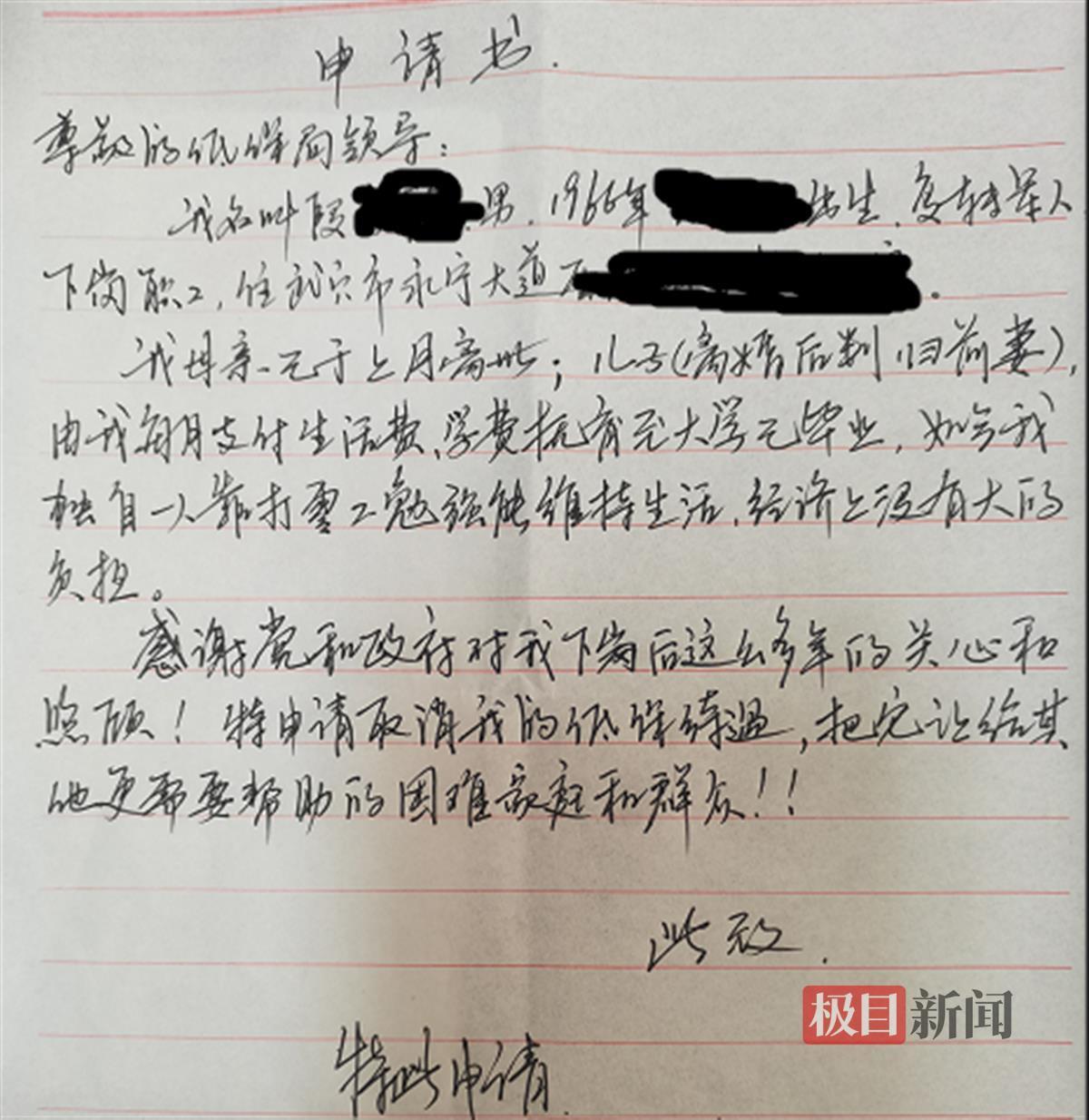 “我家现在的负担减轻了,孩子工作了,能自食其力了,我自愿申请退出低保。”11月14日,湖北省武穴市武穴街道一社区居民段先生将申请书递到社会救助工作人员手中说道。