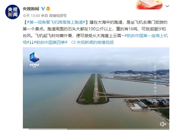 【第一视角看飞机降落海上跑道】建在大海中的跑道,是坐飞机去澳门旅游的第一个景点。跑道周围的石头大都在100公斤以上,重的有16吨,可抵御潮汐和台风。飞机起飞时向窗外看,便可感受从大海直上云霄~