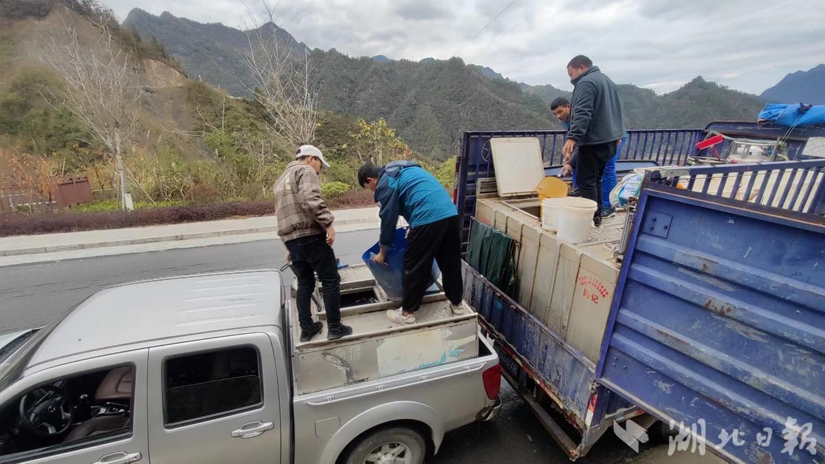 活动由湖北能源集团溇水水电有限公司联合武汉中科瑞华生物科技股份有限公司联合实施。活动当天,好事多磨,经过长途跋涉的运鱼车到了南渡江大桥附近,就发起了脾气,怎么也不走了。为确保车上的12万尾鱼苗安全到“家”,工作人员迅速调集本地运鱼车进行转运放流,司法公证处公证人员在转运处对放流品种进行抽查、计数、称重,县农业农村局工作人员在放流现场对放流品种、规格、数量进行监督。