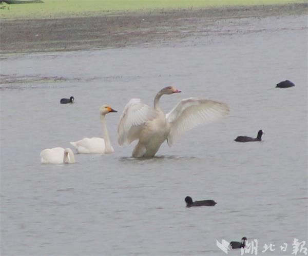 据朱湖国家湿地公园管理处鸟类监测技术负责人池清华介绍,这是今冬首批抵达朱湖国家湿地公园的小天鹅。每年冬季,总会有一批批青头潜鸭、鸿雁、斑头雁、小天鹅等国家一、二级重点保护野生动物飞抵朱湖,这里已成为10万多只候鸟越冬之地。