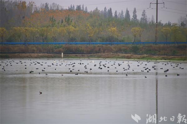 湖北日报客户端讯(通讯员万清平)11月16日,在湖北孝感朱湖国家湿地公园菱角湖一片池塘,8只国家二级重点保护野生动物小天鹅,在200多只骨顶鸡、黑水鸡、普通鸬鹚等一众水鸟的簇拥下,有的展翅欢歌,有的专心“干饭”,有的互相亲昵,有的悠然戏水,如同一幅优美动人的生态画卷。