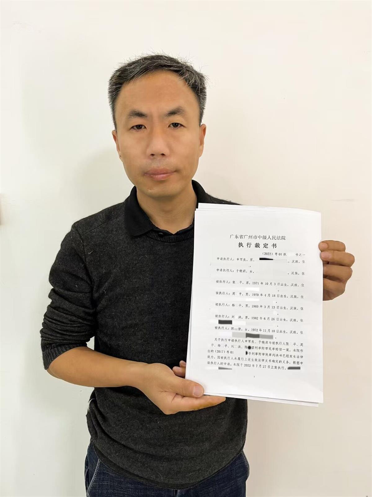 申军良介绍,2021年12月,广东省高级人民法院对“梅姨案”张维平等5人拐卖儿童案作出二审判决,刑事部分维持一审判决张维平、周容平死刑,另有二人被判处无期徒刑、一人被判刑十年;民事部分判决张维平、周容平等5名原审被告人连带赔偿申军良夫妇物质损失39.5万元。但因当时没有调查到几名人贩子有可以执行的资产,所以他们一家人对能拿到民事赔偿一事,并没抱有太大希望。