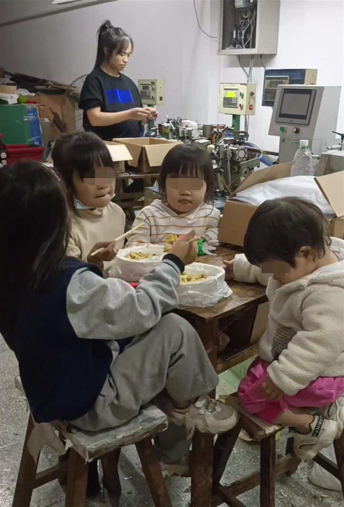 把四个孩子带到厂里上夜班