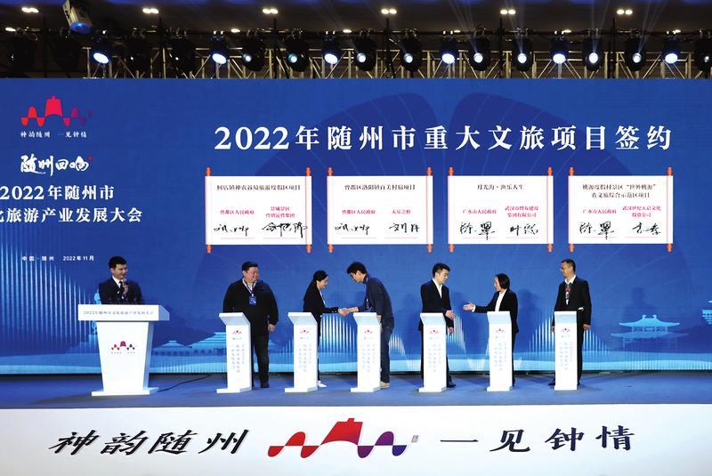 曾都区、广水市分别与景域景区营销运营集团、莫干山大乐之野民宿、武汉市傅友建设集团有限公司、武汉世纪天启文化投资公司签约,推动实施何店镇神农谷境旅游度假区项目、洛阳镇百美村宿项目、月光海·渔乐人生项目、桃源度假村景区“世外桃源”农文旅综合示范区项目。