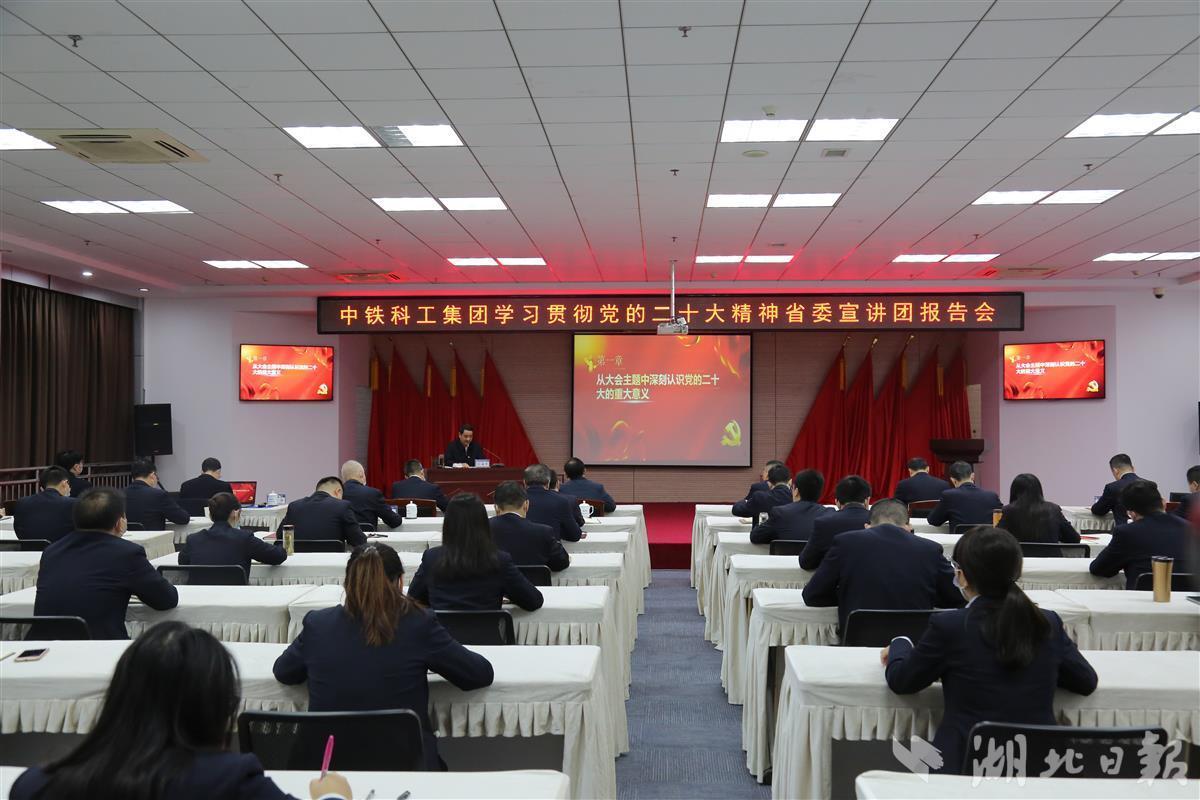 湖北日报讯(记者林晶、通讯员覃志威)11月18日,学习贯彻党的二十大精神湖北省委宣讲团走进中铁科工集团,省委宣讲团成员、省经信厅党组书记、厅长刘海军以《学习贯彻党的二十大精神 为全面建设社会主义现代化国家贡献力量》为题作报告宣讲。中铁科工集团领导干部、基层党员群众和非在汉人员等400余人在现场或以视频形式参会。