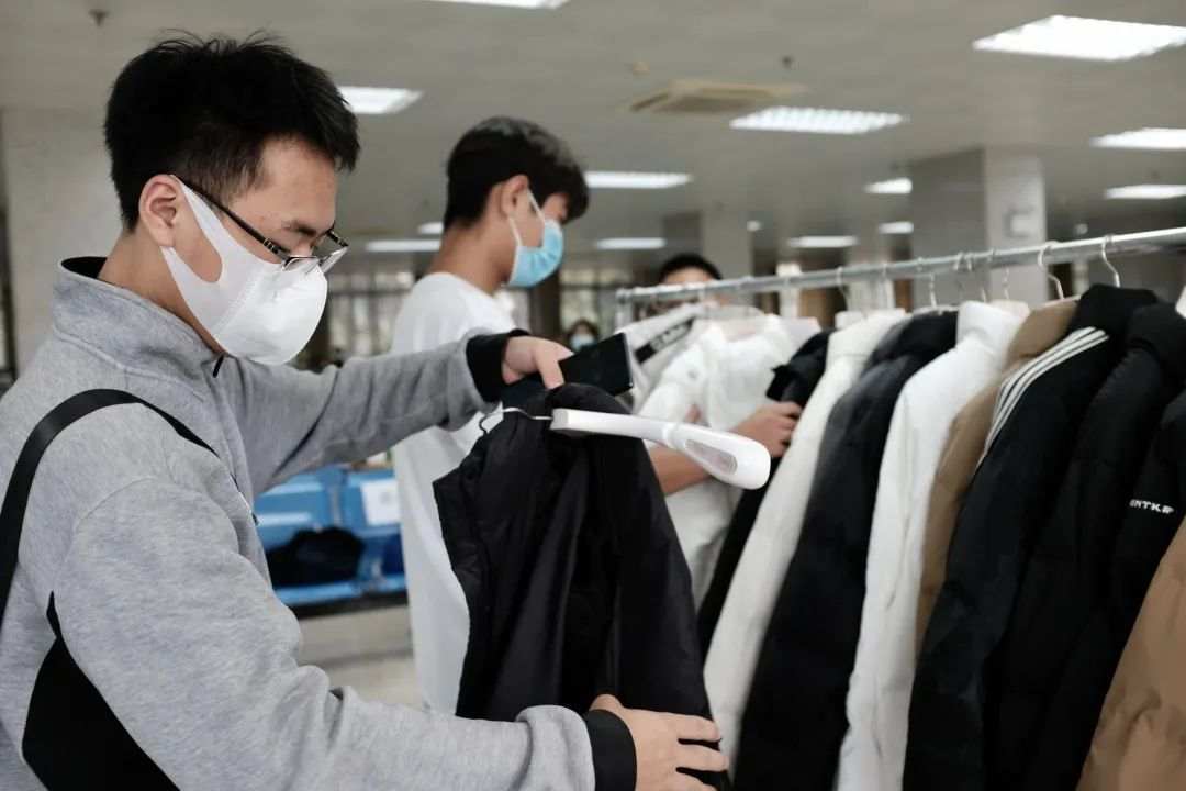 一位岑姓同学试穿了几款不同颜色的羽绒服之后,选择了最喜欢的一件黄色衣服。对着镜子试了又试,她开心地说:“这些衣服不仅舒服,款式也十分适合大学生。通过这一件件小事,我愈发感受到学校对我们困难学生的关心,这使我感到很温暖。”