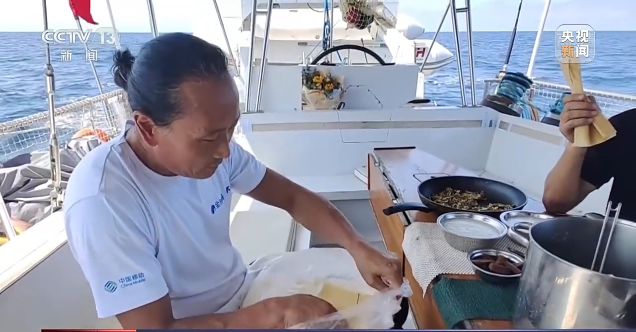 航海家 翟墨:世界上有四大渔区,我们三个渔区都经过,经过的时候我们钓了很多的鱼,吃不完的时候可以放在冰箱里面,可以作为我们下一个航程的补给。