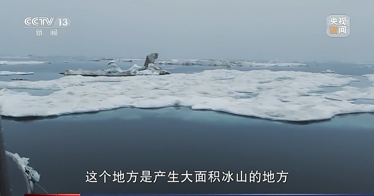 航海家 翟墨:从上海启航,经过日本海,然后到白令海峡,然后是斯瓦尔巴,一直到冰岛、格陵兰。这是格陵兰最北边,这个地方是产生大面积冰山的地方。