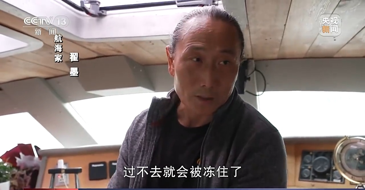 航海家 翟墨:最危险的应该是在北纬75度,因为这个地方所有的导航设备全部失灵了,这样对我们航行来说是一个最大的障碍,我们连航向都没有。另外到了这个地方,它有一个时间窗口期,过不去就会被冻住了。冻住的话,这个地方其实离陆地是比较近的,就会面临一个北极熊(在的危险)。