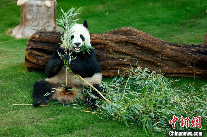 大熊猫“京京”爱吃,来到卡塔尔后长胖了三到五公斤。 中新社记者 富田 摄