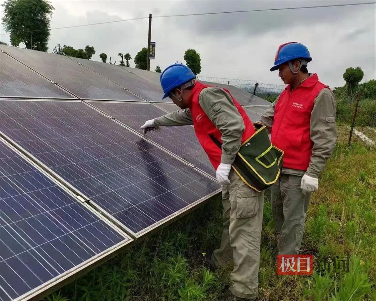 为践行“碳达峰、碳中和”战略,实现“3060”目标,通山公司积极部署,组织“跑山电工”党员服务队,主动服务光伏发电,定期对光伏板进行安全巡检,帮助光伏用户解决相关用电问题,进一步提升全县能源结构“含绿量”,为乡村振兴和地方经济社会发展注入源源不断的绿色电能。(图片由陈新权、杜嘉怡、程华荣提供)