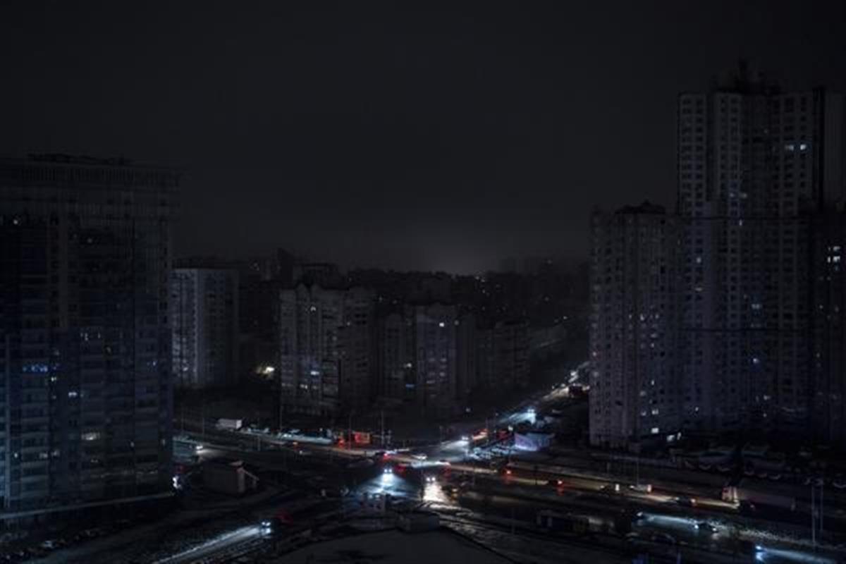 空袭过后,乌克兰首都基辅居民区断电(图片来源:美联社)