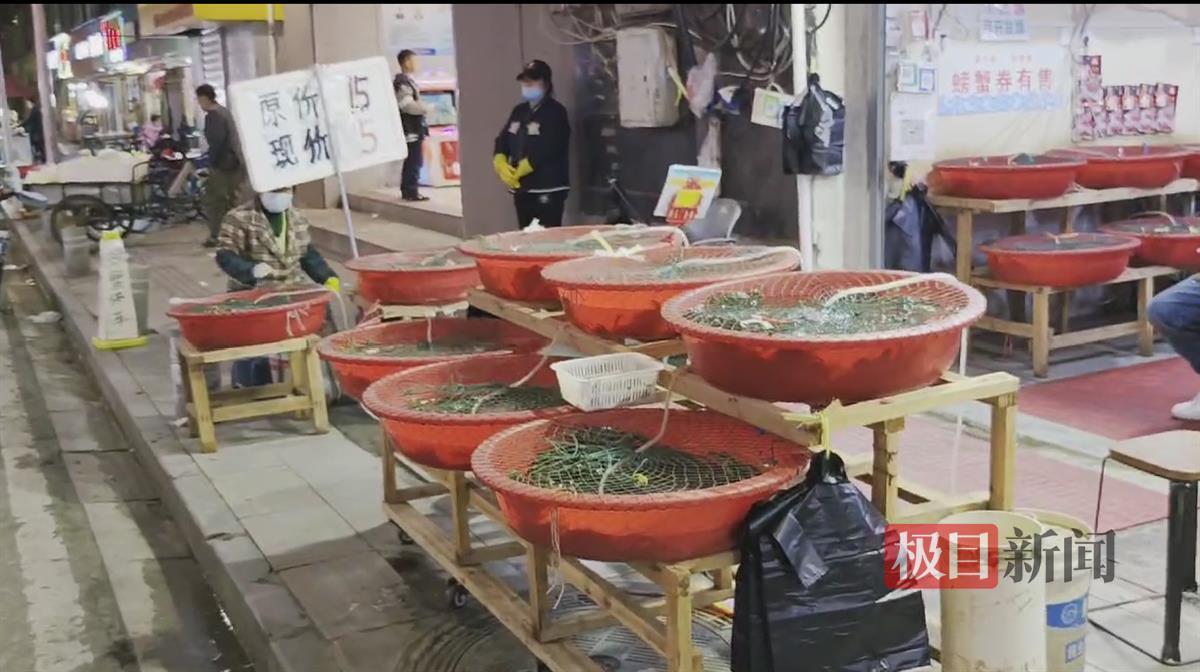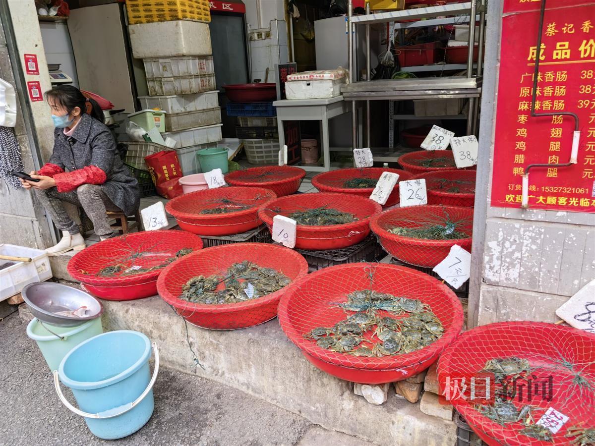 如今,11月份的螃蟹市场上货源明显增多,价格却卖不起来了。在汉口聚才路的生鲜市场里,几家水产门店外都摆放着一盆盆的螃蟹,规格最小的螃蟹也有2两半左右,价签上标注着“10元3只”的字样,成为店里最受欢迎的品种。