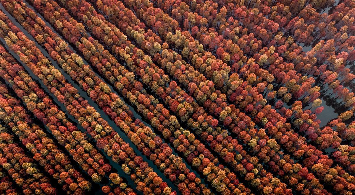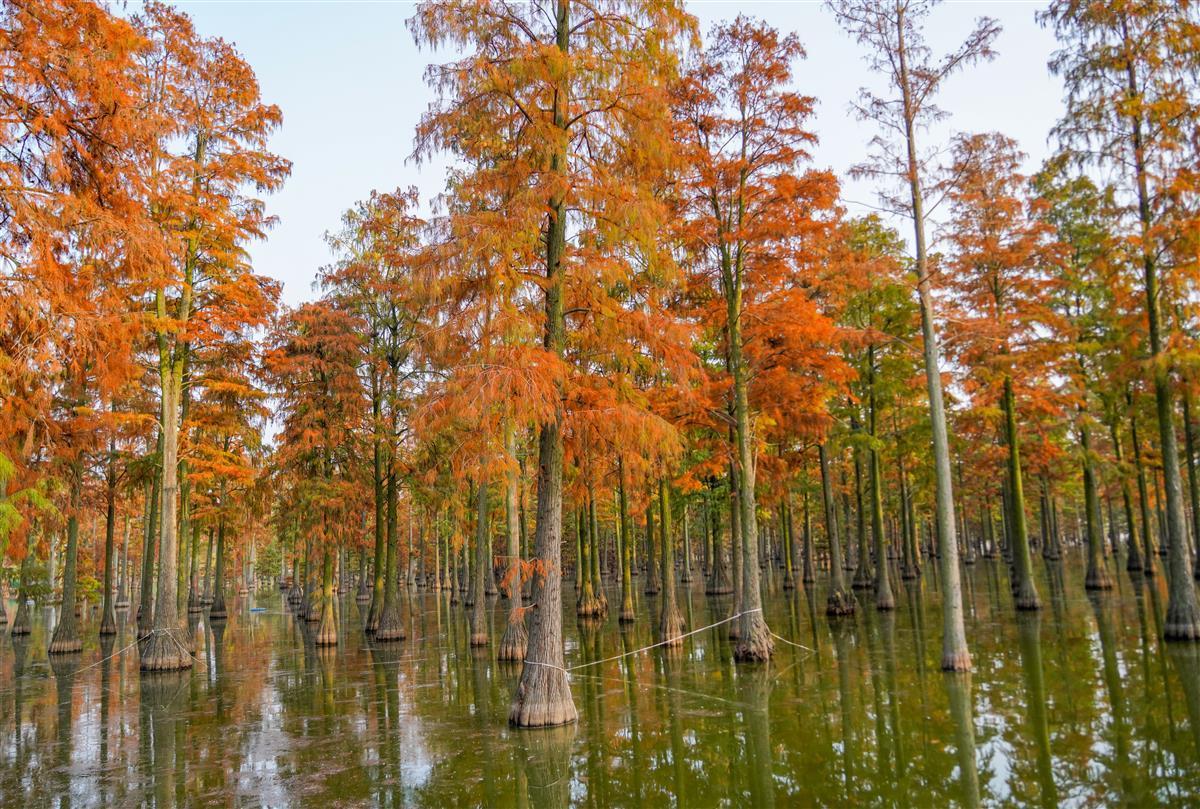 “哇,红得太美了!”11月26日下午,记者在武汉市新洲区涨渡湖湿地公园看到,数千株已经变红的池杉树,在冬日暖阳的照耀下显得格外红艳。