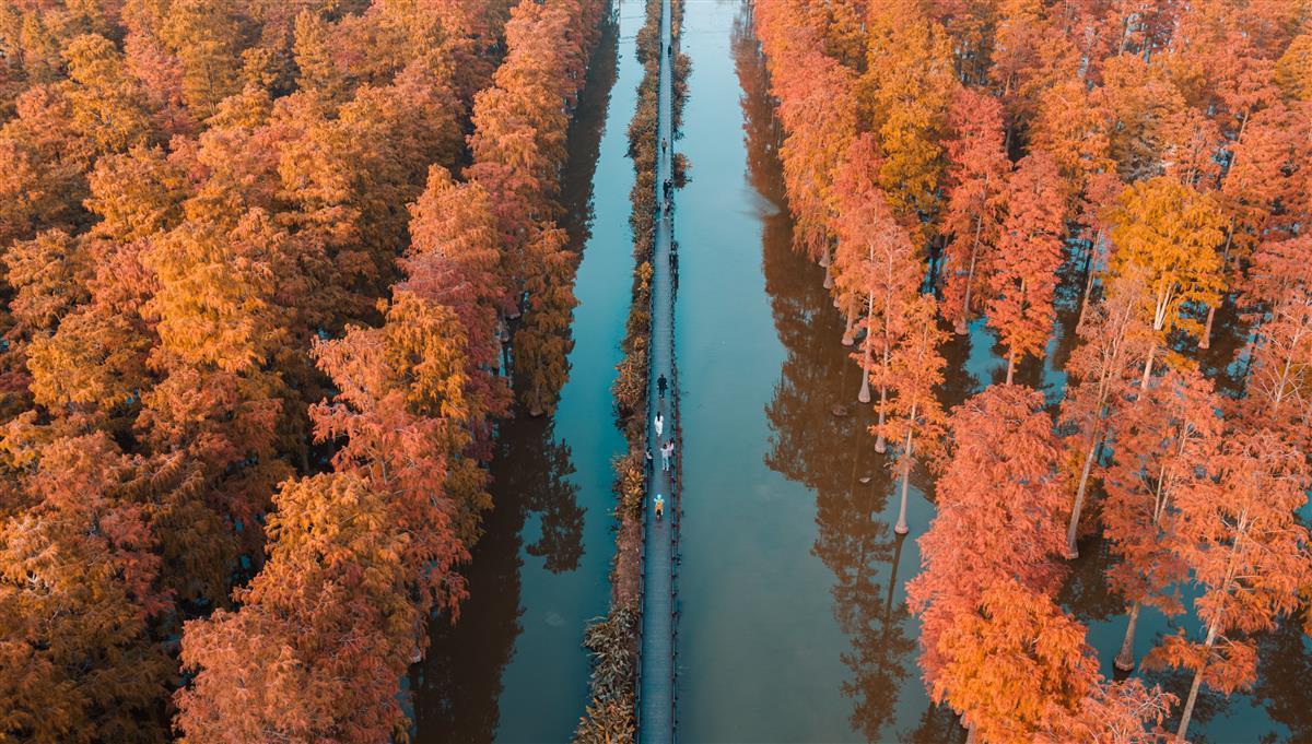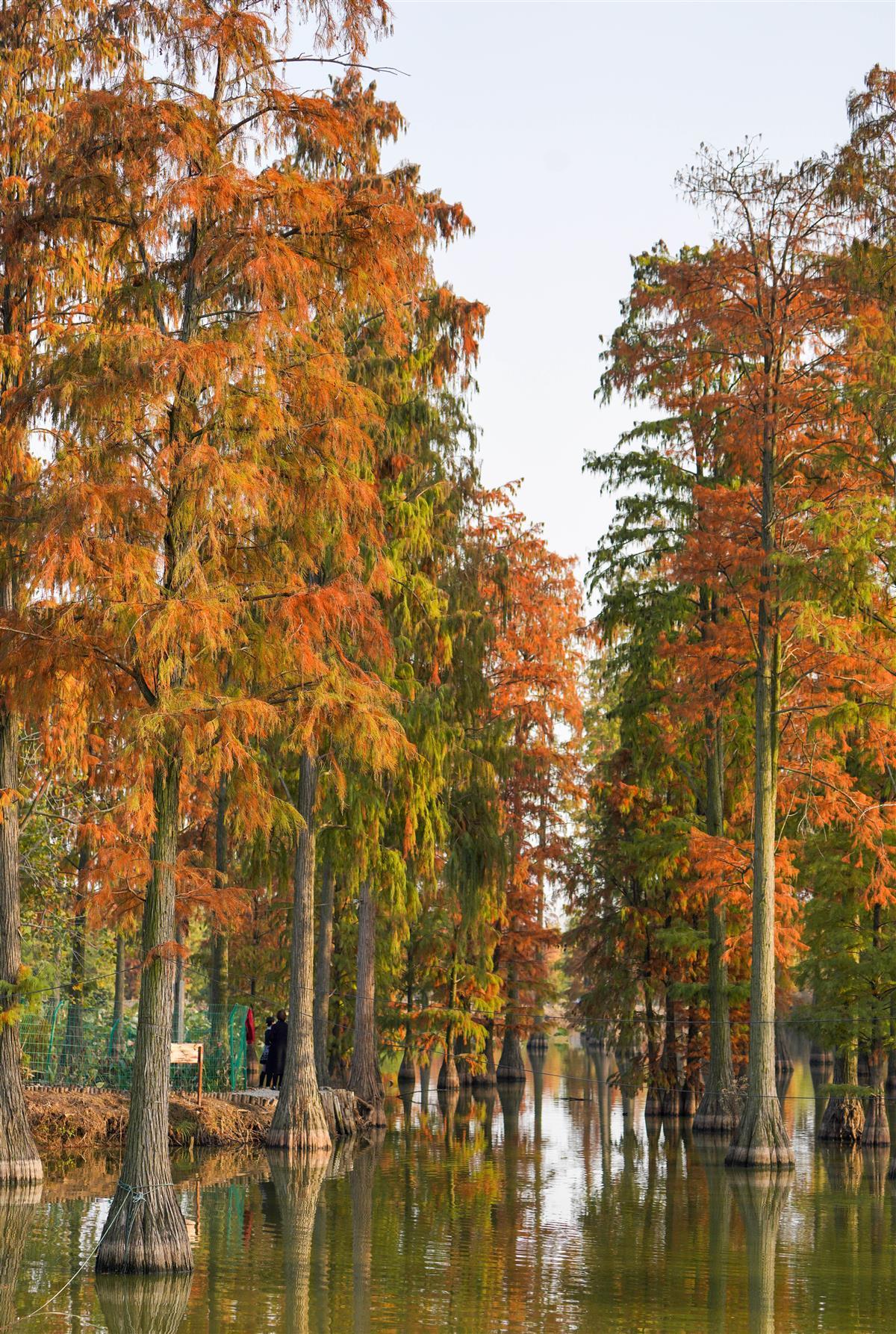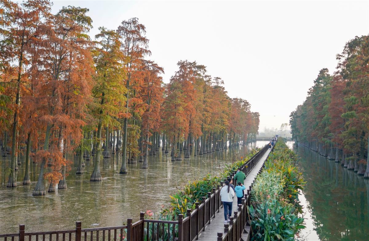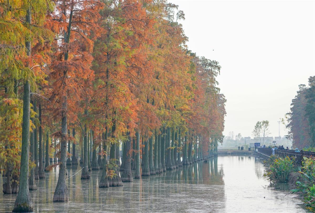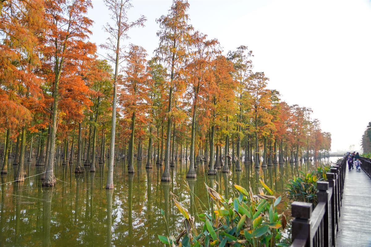 红艳艳的大片池杉林,让身临其境的市民们发出赞叹。