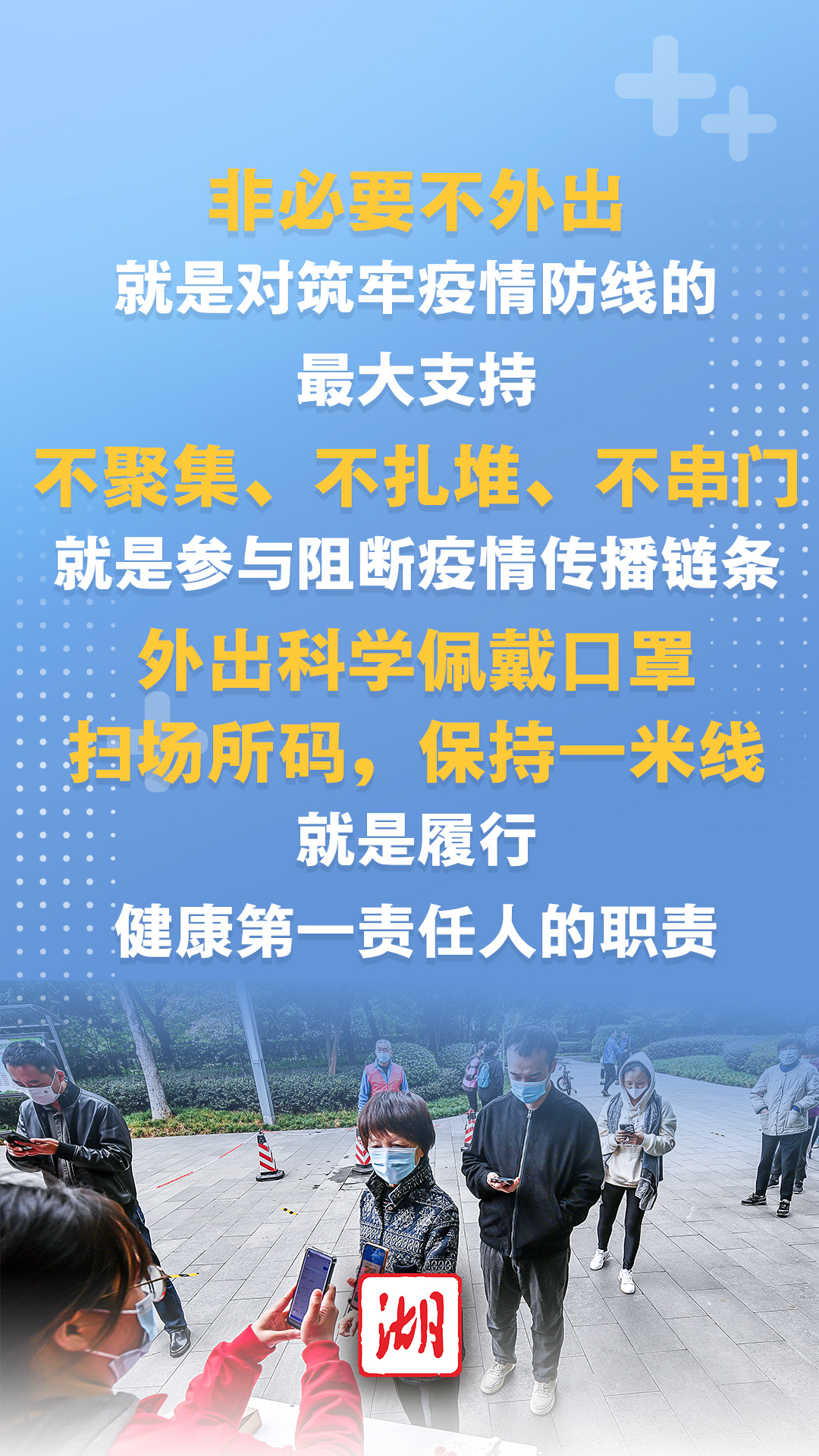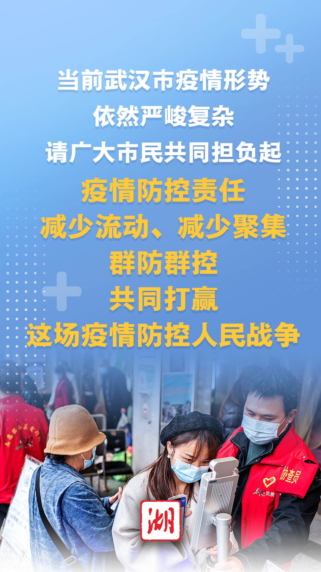 当前,疫情形势依然严峻复杂,武汉市疫情防控指挥部专家组呼吁,请广大市民共同担负起疫情防控责任,减少流动、减少聚集,群防群控,共同打赢这场疫情防控人民战争。