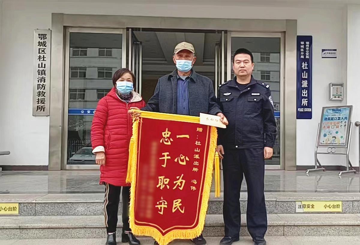 六旬老人走失,亲朋寻找未果,巧遇热心民警协助,在走失一整天后找回。11月25日,在鄂州市公安局杜山派出所,走失老人的朋友徐先生送来锦旗,感谢民警及时相助。