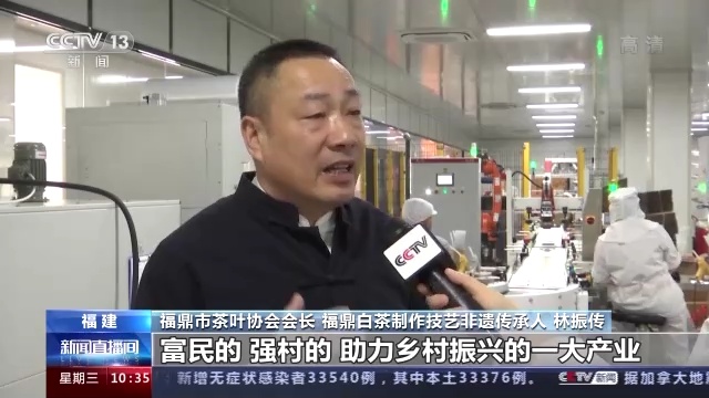 福鼎市茶叶协会会长、福鼎白茶制作技艺非遗传承人 林振传:到今天,我们的福鼎白茶已经成为富民的、强村的、助力乡村振兴的一大产业,要去拥抱这种智能化、自动化,动用大数据管理,更有效、更标准提高我们产业的高质量发展。