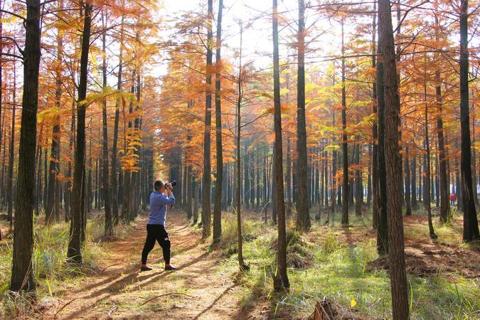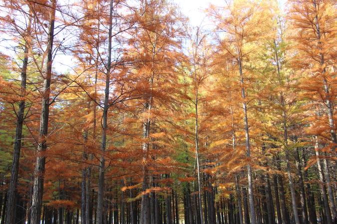 渡槽边漂亮的红杉林。