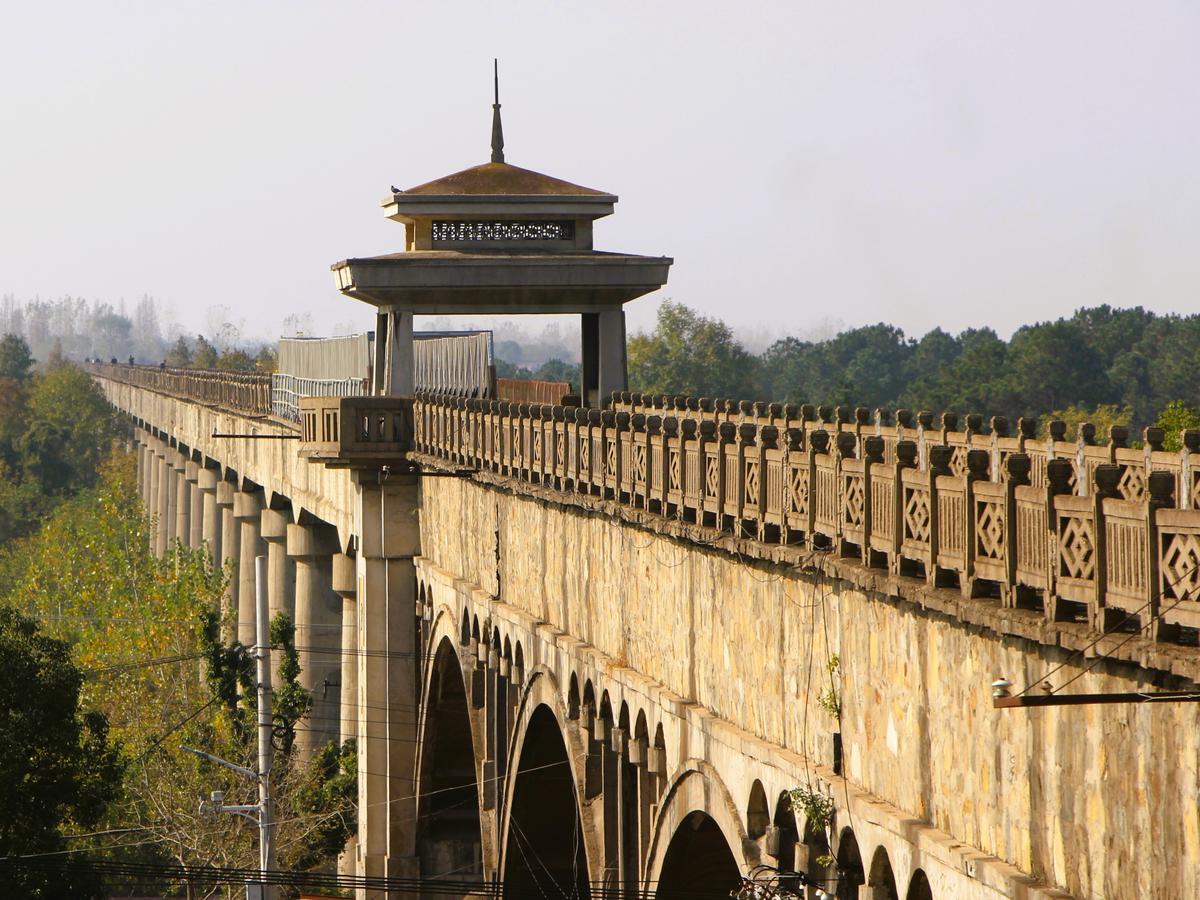 京广铁路从渡槽下穿过。