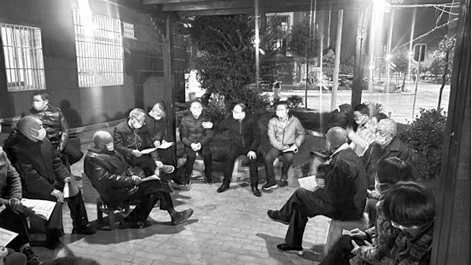 谷城皮家洼街社区干部和群众在议事亭里议民生通讯员覃璐 全媒体记者童光辉摄