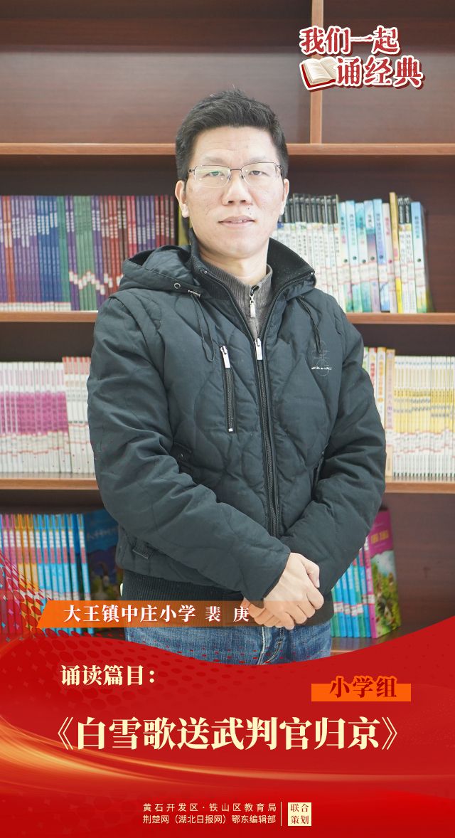 大王镇中庄小学裴庚。诵读篇目:《白雪歌送武判官归京》