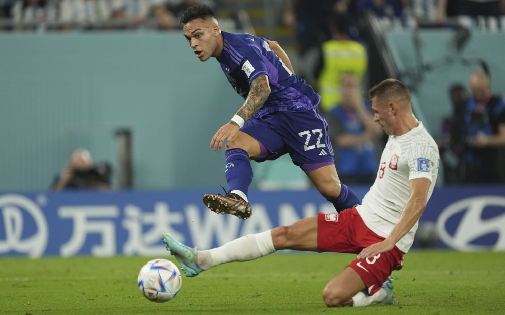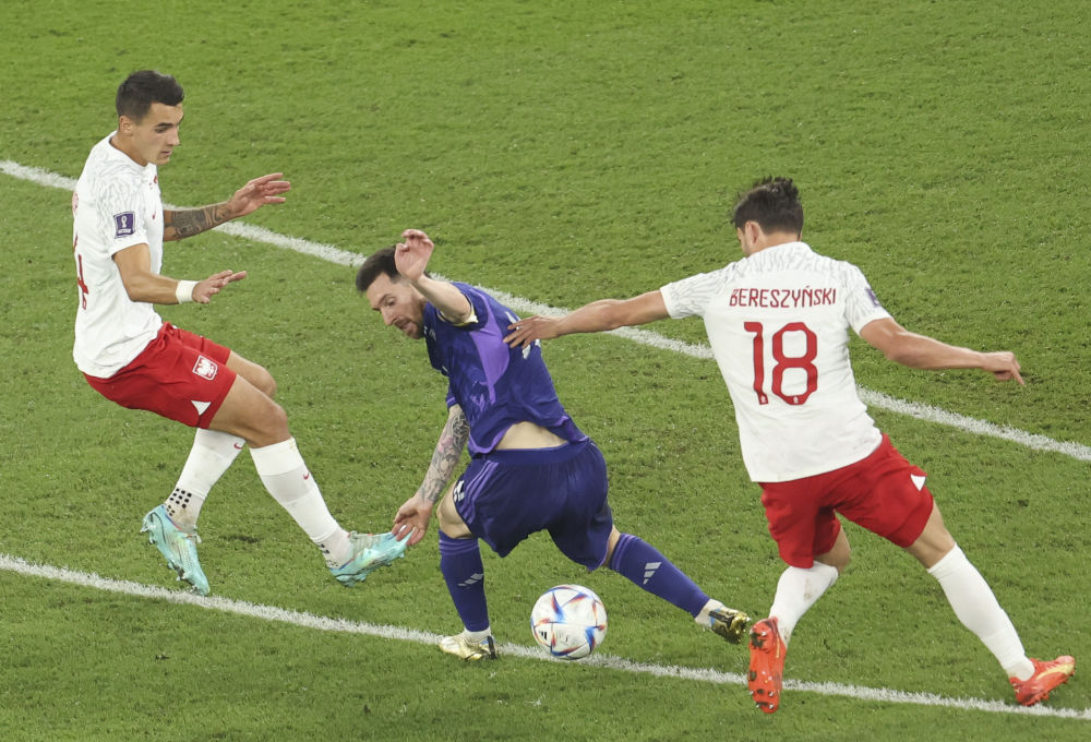 C组两位锋线球星的对决在974球场上演。梅西领衔的阿根廷队2:0战胜莱万多夫斯基领衔的波兰队,积6分以小组头名出线。