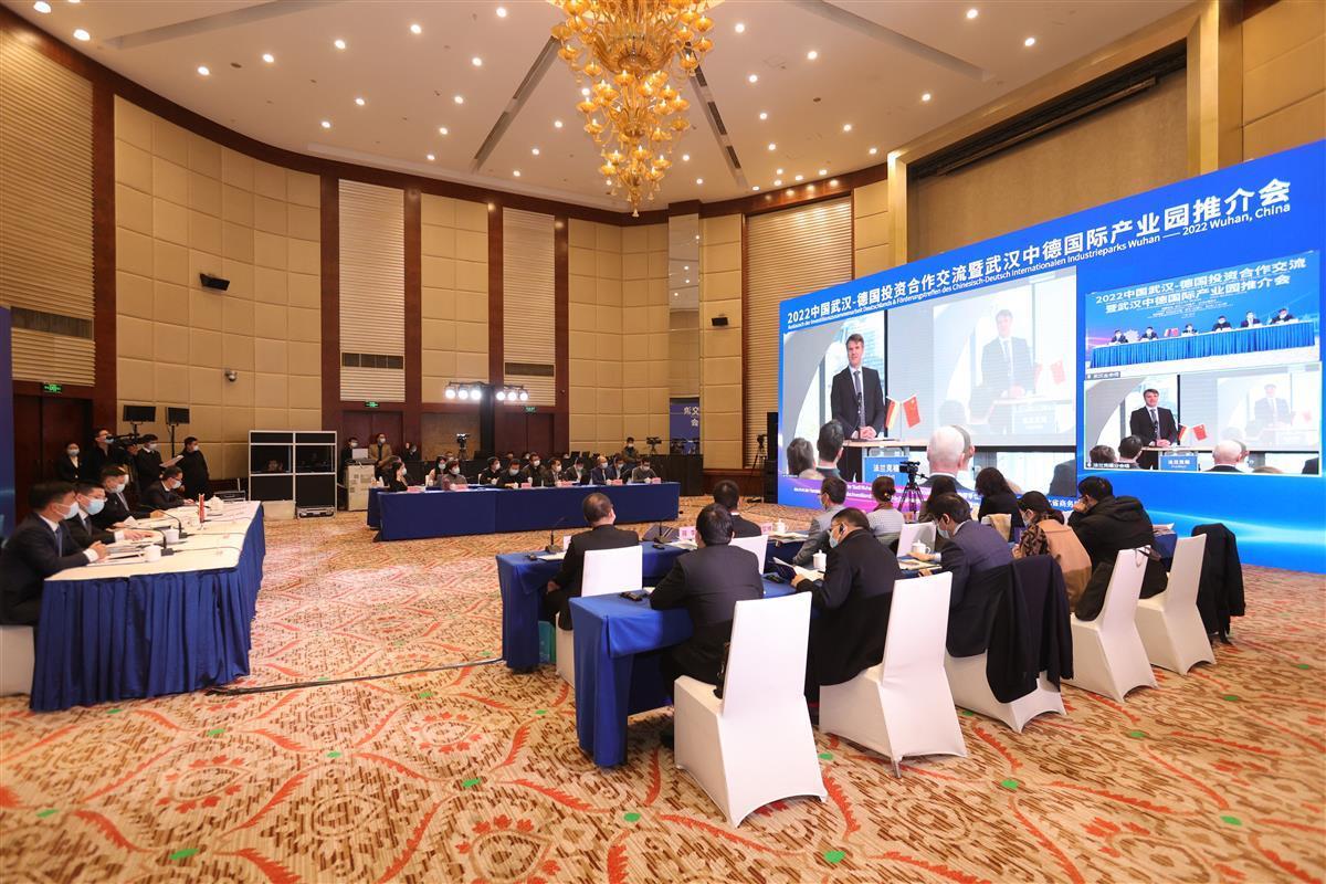 湖北日报讯 (记者黄磊 通讯员朴敏卉)12月1日,2022中国武汉-德国投资合作交流暨武汉中德国际产业园推介会,在中国武汉主会场、上海和德国法兰克福分会场通过视频连线方式同时举办。武汉会议现场,“武汉市德国企业服务中心”宣布揭牌。