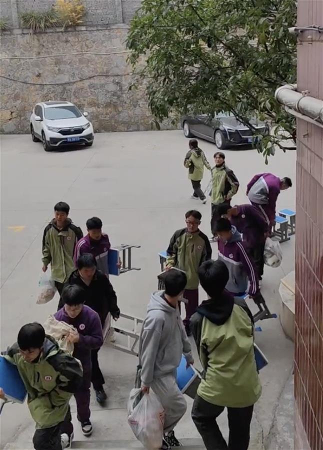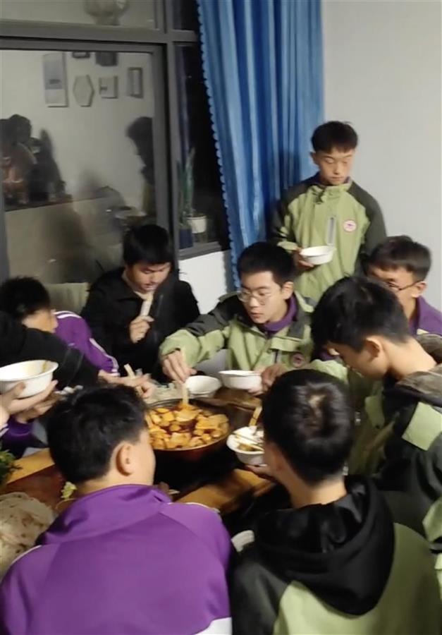 12月3日正值周六,当天傍晚,贵州遵义清华中学39名高一学生在班主任陈老师的住所相聚。同学们从教室里拿出椅子,从体育馆借来折叠桌,提着老师买的食材,一行人浩浩荡荡地朝教师公寓走去。