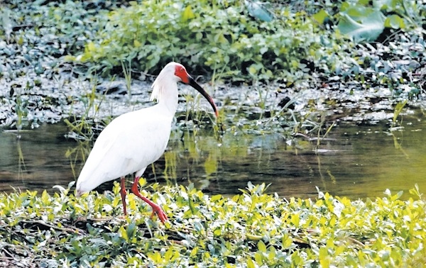 “根据这种鸟的习性,我推断它跑不远,肯定会顺着河道觅食。”12月6日一大早,刘洪军带好各种装备骑摩托车沿犟河继续寻找朱鹮。抵达犟河后,他与两位朋友沿河徒步寻找,终于在上午11时许发现一只正在河道水草中觅食的朱鹮。悄然走进距离其仅有30米处时,刘洪军仔细端详发现,这只朱鹮身长70厘米左右。