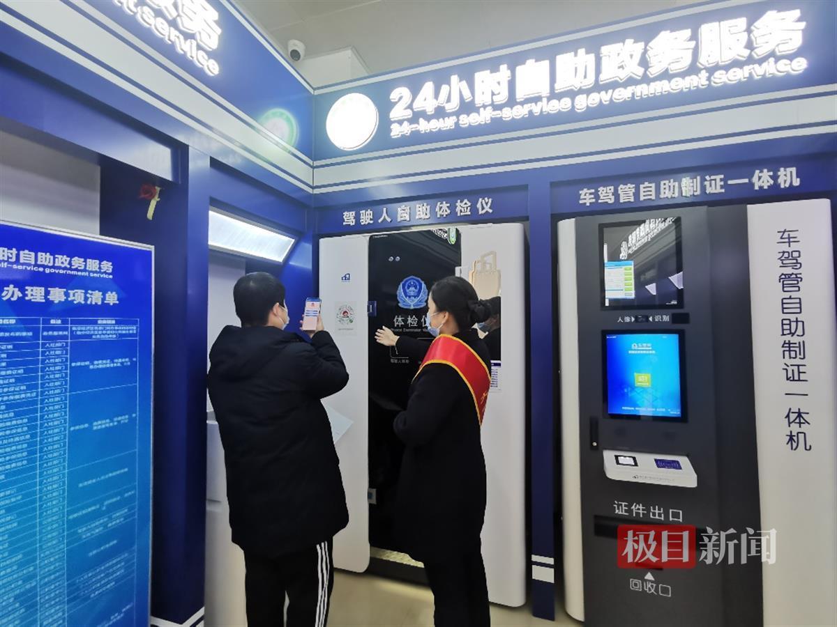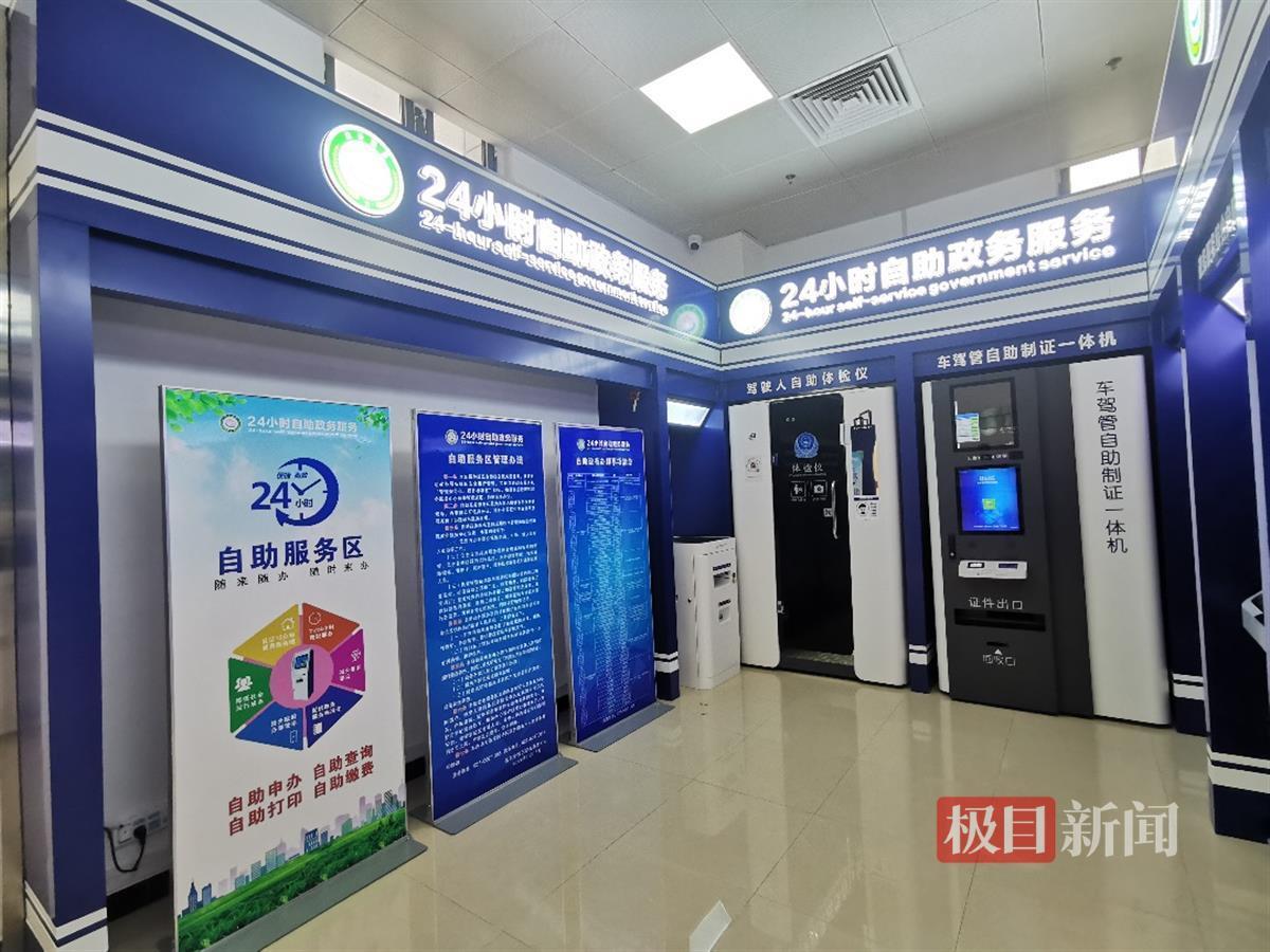 极目新闻记者获悉,经过全新升级改造的24小时自助服务区,放置了政务服务综合自助终端机、车驾管自助制证一体机、公积金自助一体机、社保自助服务一体机、国家电网自助机、天然气自助缴费机等自助设备,可在线办理湖北政务服务网业务985项,全程自助办理业务56项。