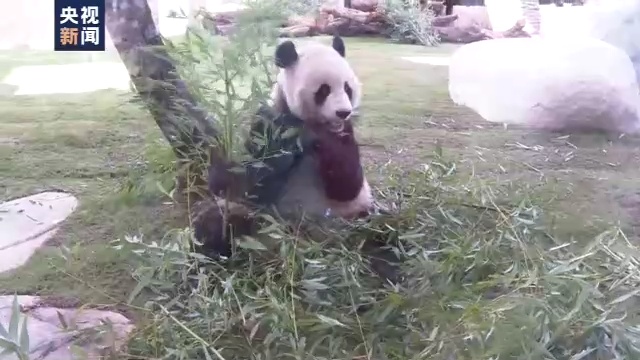 总台记者 李霜溪:在大熊猫馆里,我们可以看到有不少的中国元素,像中国的松树、竹子等等,而所有的引导牌上也都标有中文。
