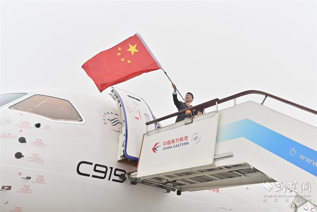 MU919航班是当天11时39分从上海浦东机场起飞的,当班乘务长通过客舱广播致欢迎词:“中国东航迎来了全球首架C919大型民航客机,很荣幸能和您共同亲历和见证这一激动人心的时刻。我们即将乘坐自己的大飞机,满怀雄心壮志翱翔蓝天……这一段短短的航程,将是我国大飞机投入商业运营的重要里程碑!”