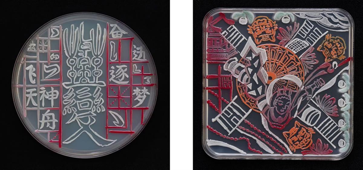 据介绍,在历时5个月的比赛中,我省22所高校的544支队伍提交了839幅作品。一等奖作品《微舞》以中国传统艺术表演舞龙、舞狮、京剧为创意元素,以灭菌移液枪枪头为画笔,以粘质沙雷氏菌、大肠杆菌、金黄色葡萄球菌为颜料,在LB培养基上完成,展示了传统艺术与生命的交织,以微生物的生长展现舞动生命之美。《双飞·扶摇直上九万里》以古今飞天、汉字演变为设计元素,传达了“不变羽化万变,万变梦想实现”的思想,该作品以灭菌细笔为画笔,以粘质沙雷氏菌、红色酵母菌、白色酵母菌和青霉等菌种为颜料,根据不同菌种的特点在PDA培养基上逐步创作而成。《海的女儿》 将童话故事与微生物破壁结合,运用过氧化氢与大肠杆菌发生过氧化氢酶作用,继而产生氧气的原理,呈现了海的女儿为追求爱与美好化为泡沫的场景。作品以改良接种环为画笔,大肠杆菌、嗜根考克氏菌、红色细菌、酵母菌为颜料,在细菌酵母共生培养基逐步创作而成。