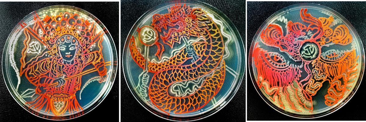 华中农业大学生命科学技术学院党委书记范金凤介绍说,微生物有着千变万化的形态、颜色等,微生物培养皿艺术设计既需要熟悉微生物的特性,也需要审美,通常是先进行艺术设计,再培养不同细菌进行勾边、填色等创作,因为细菌培养并不完全可控,所以一幅作品需要反复制作多次,通常需要一个月才能完成。通过这一跨学科的尝试,可以巩固学生的知识,激发学生钻研生命科学的志趣,培养审美情趣。