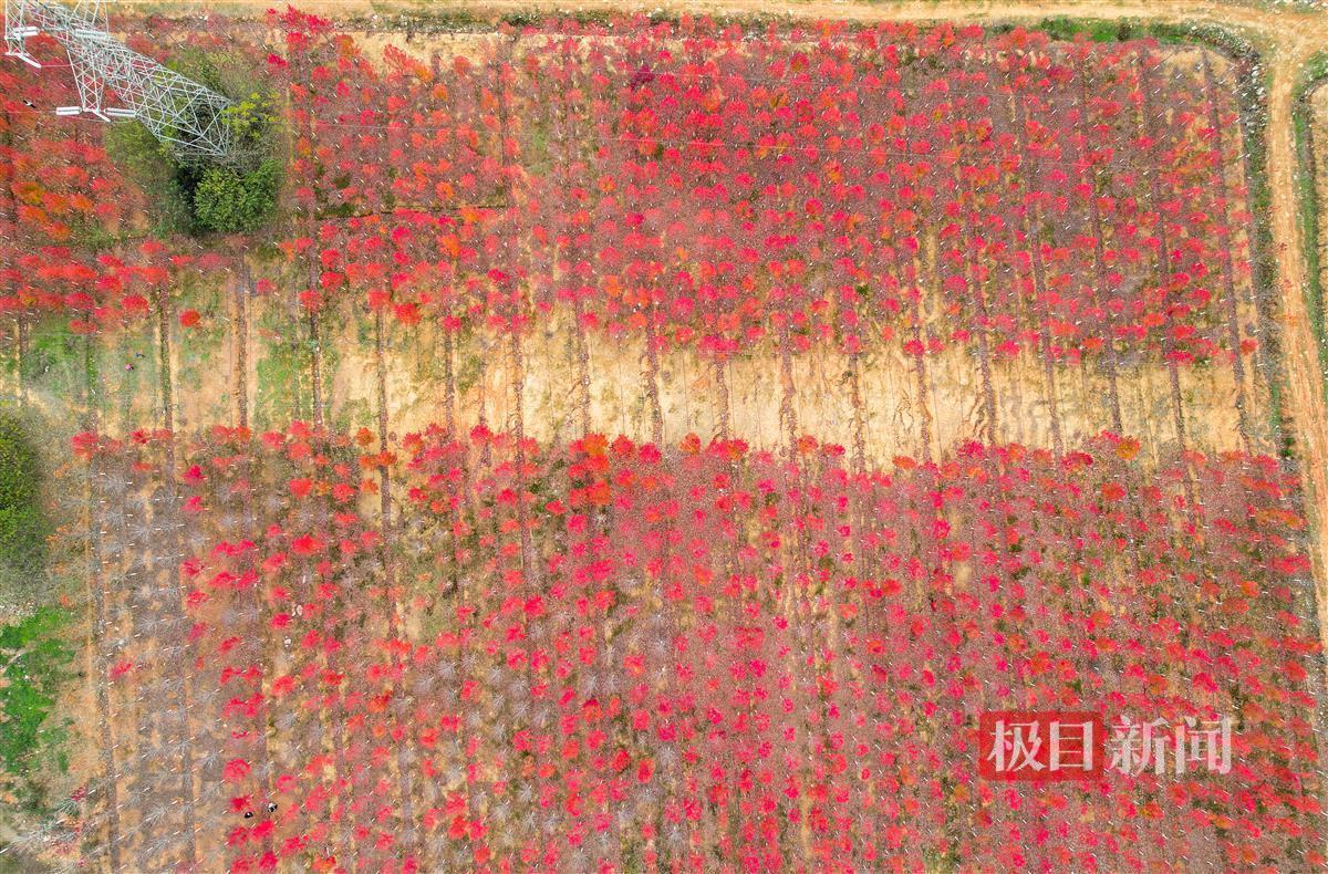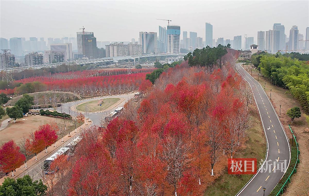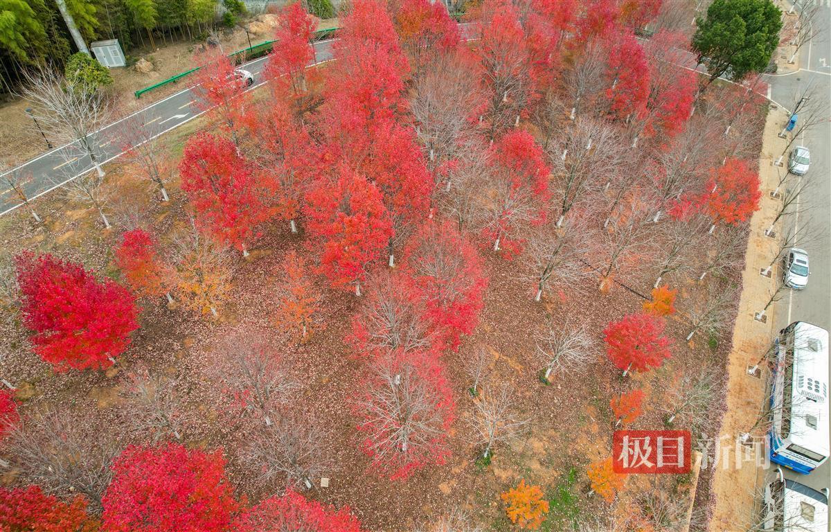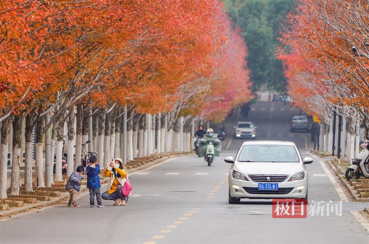 12月11日,极目新闻记者在文华学院看到,即使立冬已有月余,但该校内2000余株红枫树尚有约一半仍未掉叶。在忽隐忽现的阳光下,已经红透了的枫叶显得格外红艳。三三两两的师生和家属穿梭在红枫树下,或拍照留影,或拾起红艳艳的枫叶。
