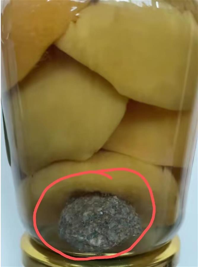 网传视频中,一瓶黄桃罐头内确实有一块石头。这瓶罐头的生产厂家,为辽宁省辽阳县一家罐头厂。