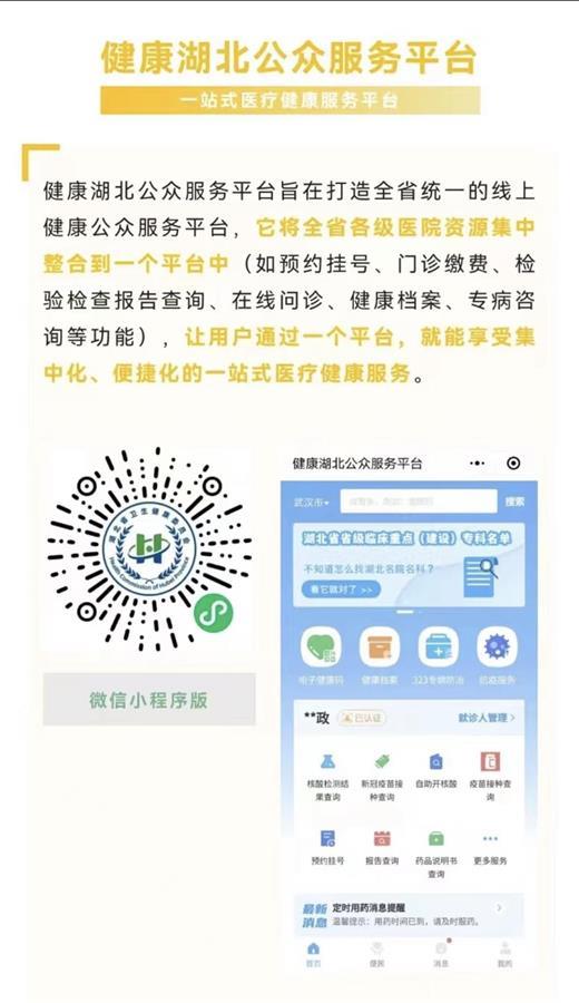 武汉大学中南医院、武汉市第三医院、宜昌市第一人民医院等互联网医院,除挂号问诊外,医生还可根据患者病情,在线开具处方药品、检验检查和入院证等延续性服务,实现药品配送到家、来院即检、一键住院等VIP式服务。