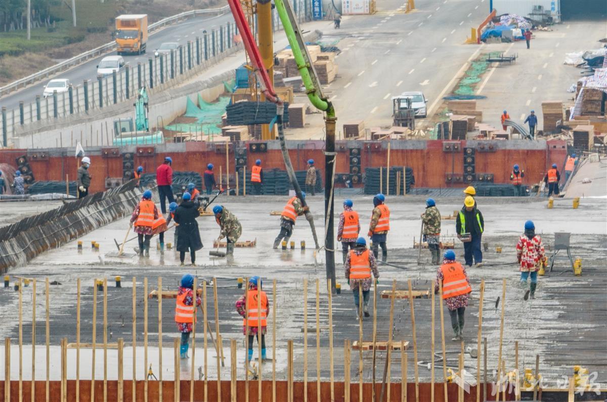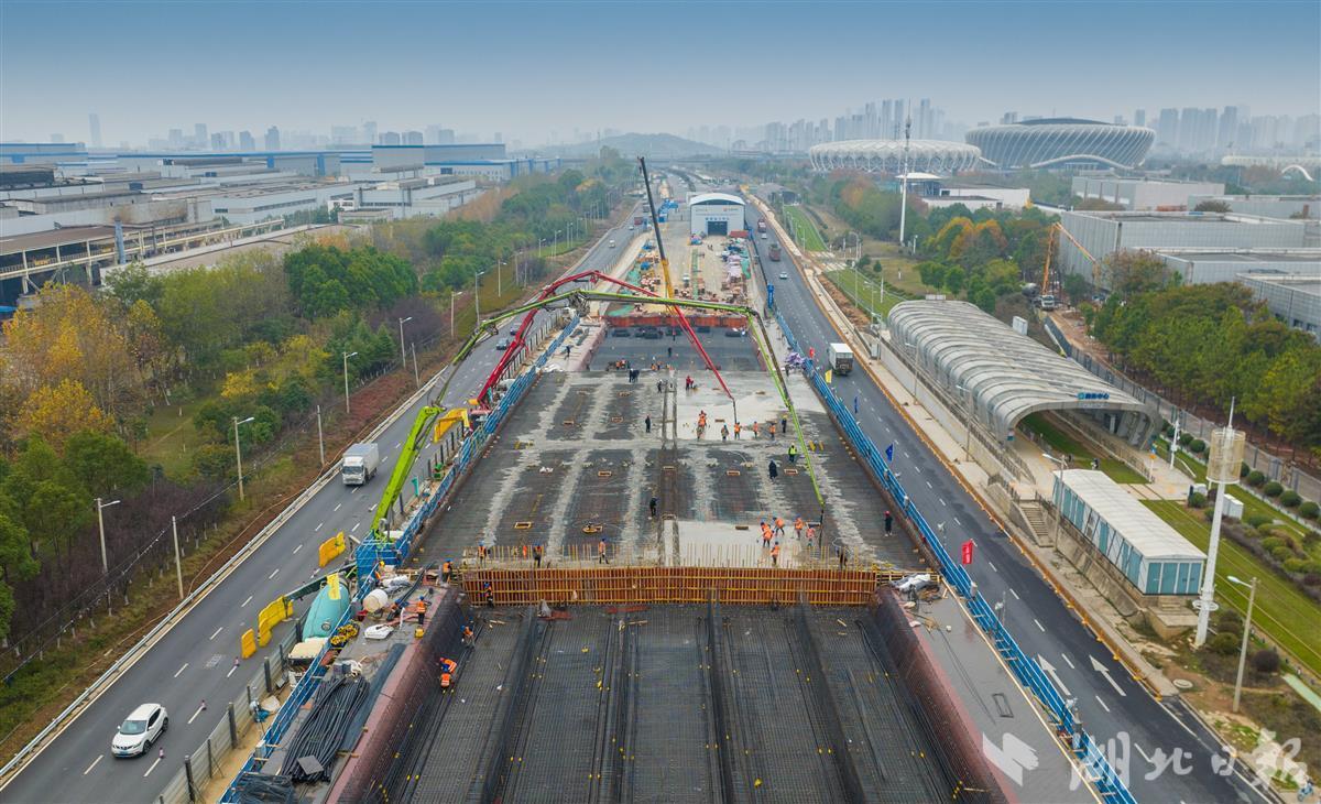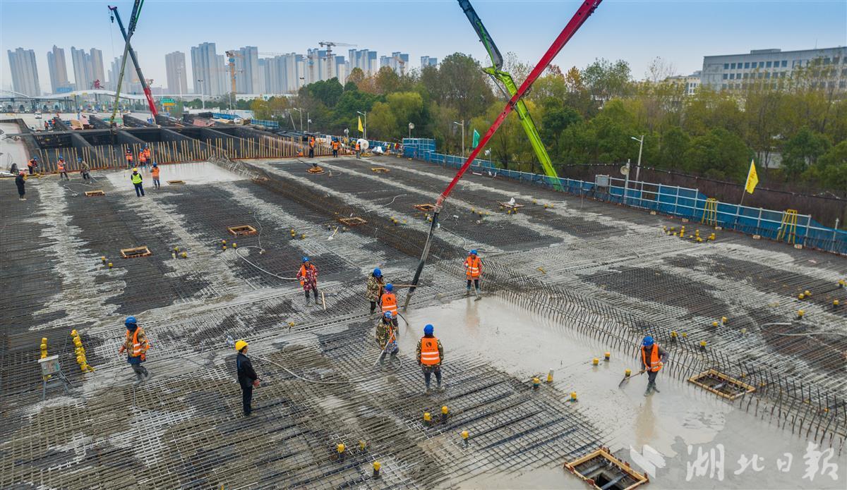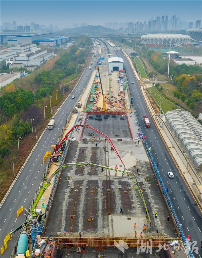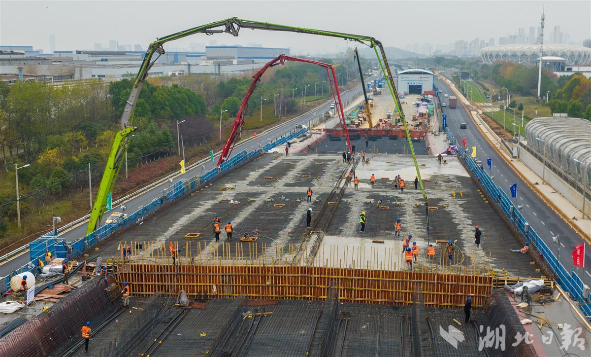 12月12日,武汉东湖高新区高新三路改造提升工程施工现场一片忙碌景象,工人们正在高架桥面浇筑混泥土。目前,建设单位正在按攻坚计划节点奋力推进,确保工程优质高效完成。据悉,高新三路(三环线-外环线)是武汉市东湖高新区“三线一点”(高新大道、高新二路、高新三路,以及光谷科学岛)重大战略工程之一,全长约10.7公里,道路等级定位为城市快速路,采用“主线高架 地面辅路”方式,将再次东移武东收费站并将关豹高速纳入城市快速路,促进光谷腹地与武汉城区的经济交流。