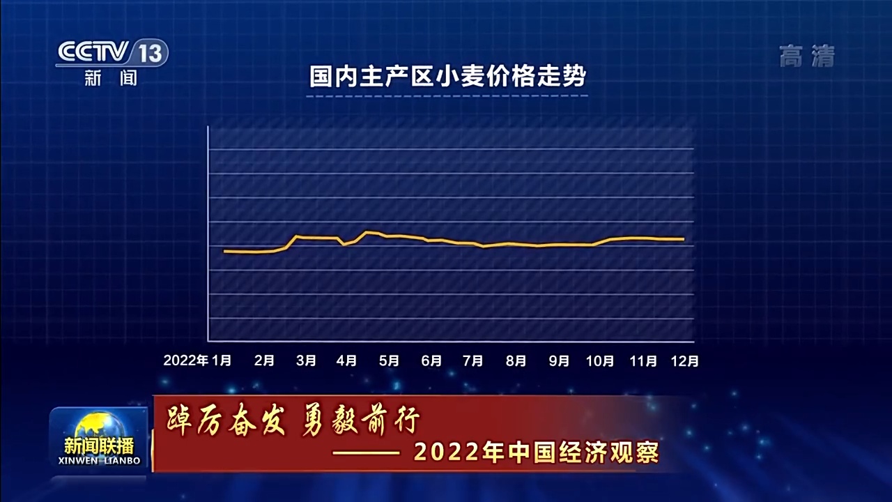 这是联合国粮农组织发布的今年全球谷物价格指数图,可以看到价格指数一度创多年来历史新高,反观国内小麦价格的走势图,却走出了一条平稳的曲线。正是来之不易的丰收,为粮价和宏观经济大盘稳定奠定了坚实基础。