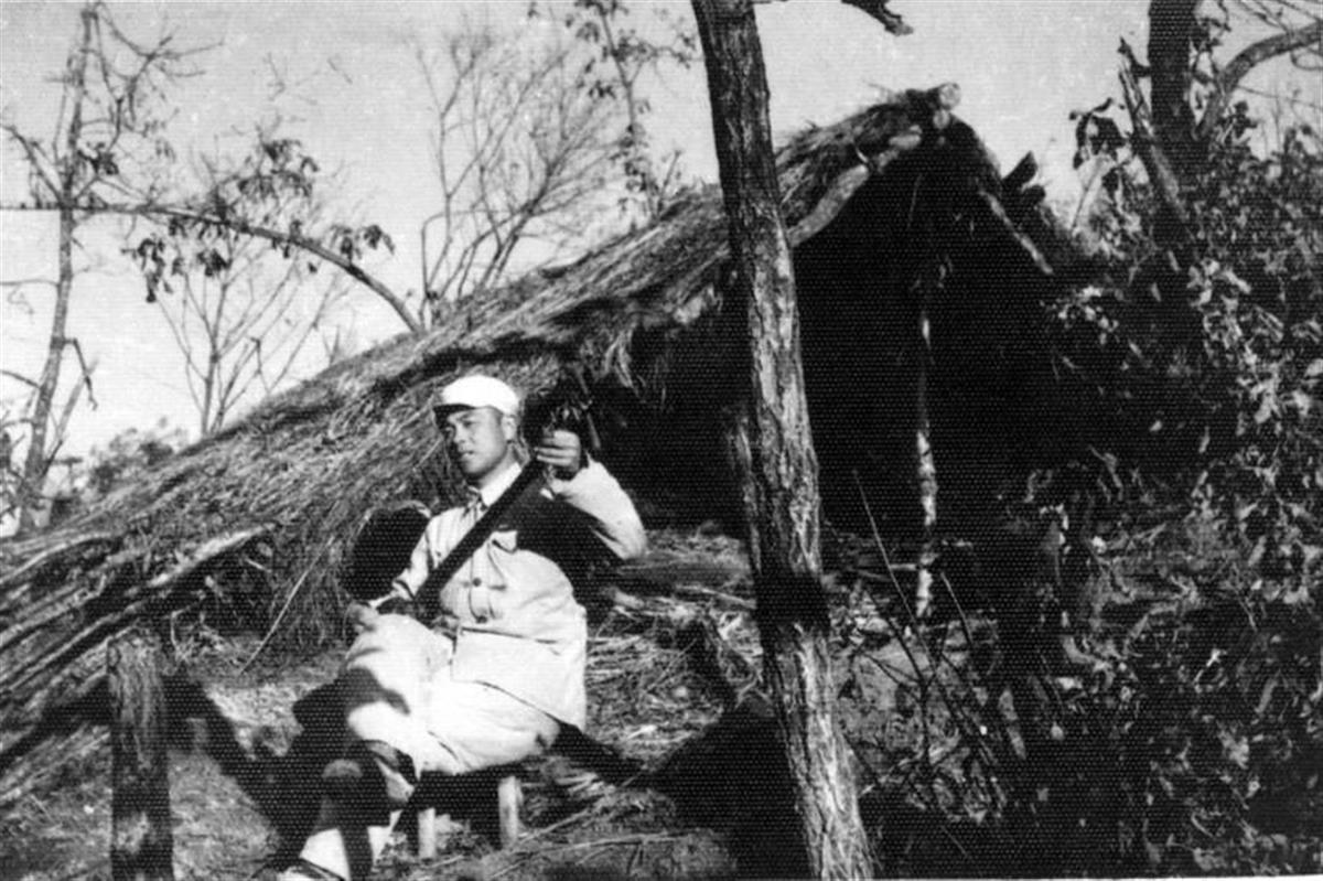 刘鸿烈在上甘岭战役结束后,在距前线约七、八华里的驻地防空洞顶上留影