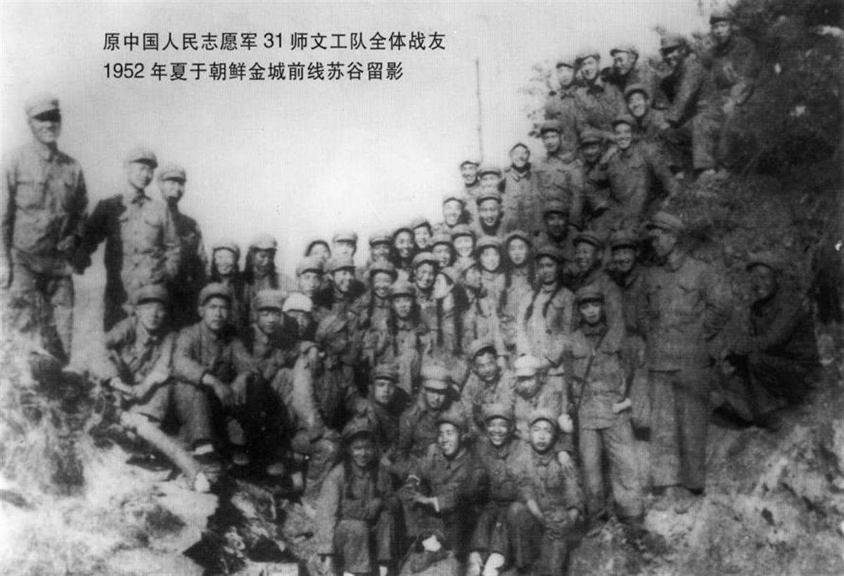 原中国人民志愿军31师文工队全体战友1952年夏于朝鲜金城前线苏谷留影(后二排左三为刘鸿烈)