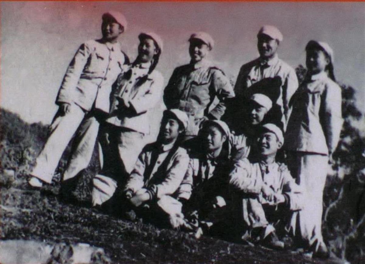 1951年夏,朝鲜战争第五次战役结束后,31师部分文工队员在谷山驻地留影(中下蹲者为刘鸿烈)