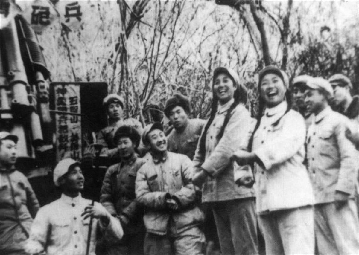 31师文工队小分队到前沿炮兵阵地慰问演唱《美国兵十大怕》(刊登于《解放军画报》)